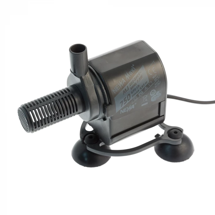 NEWA Maxijet pump are a sealed pump that may be used externally, partially or fully submerged, for a variety of applications. They are suitable for use in fresh or salt water aquariums, terrariums, outdoor fountains and hydroponic applications. The pump is not suitable, and as a consequent not covered by the manufacturers guarantee, for uses other than those specified. Versions suitable for both in and outdoor use are available. NEWA Maxi aquarium pump and power head is the ideal choice for fish or invertebrate aquariums. A complete range of sizes makes NEWA Maxi pumps flexible enough to use on under gravel filters as well as small and medium-sized trickle filter systems. The one-piece impeller assembly requires little maintenance, and the absence of loose parts makes the unit easy to clean. The accessory kit includes an innovative 3- suction cup mount support bracket to hold the