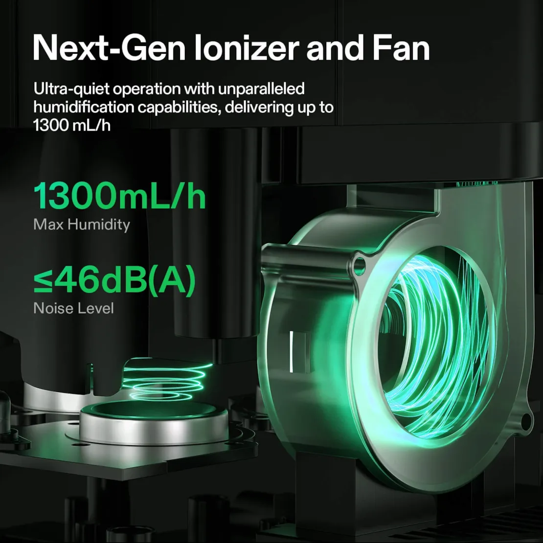 - Superior Humidity Control: The advanced ultrasonic atomiser and fan provide whisper-quiet, unparalleled humidification. The ultra-sensitive external temperature and humidity probe offers precise, targeted environmental readings. Additionally, the adjustable mist output and intelligent constant humidity function enable you to customise and maintain for optimal humidity levels.